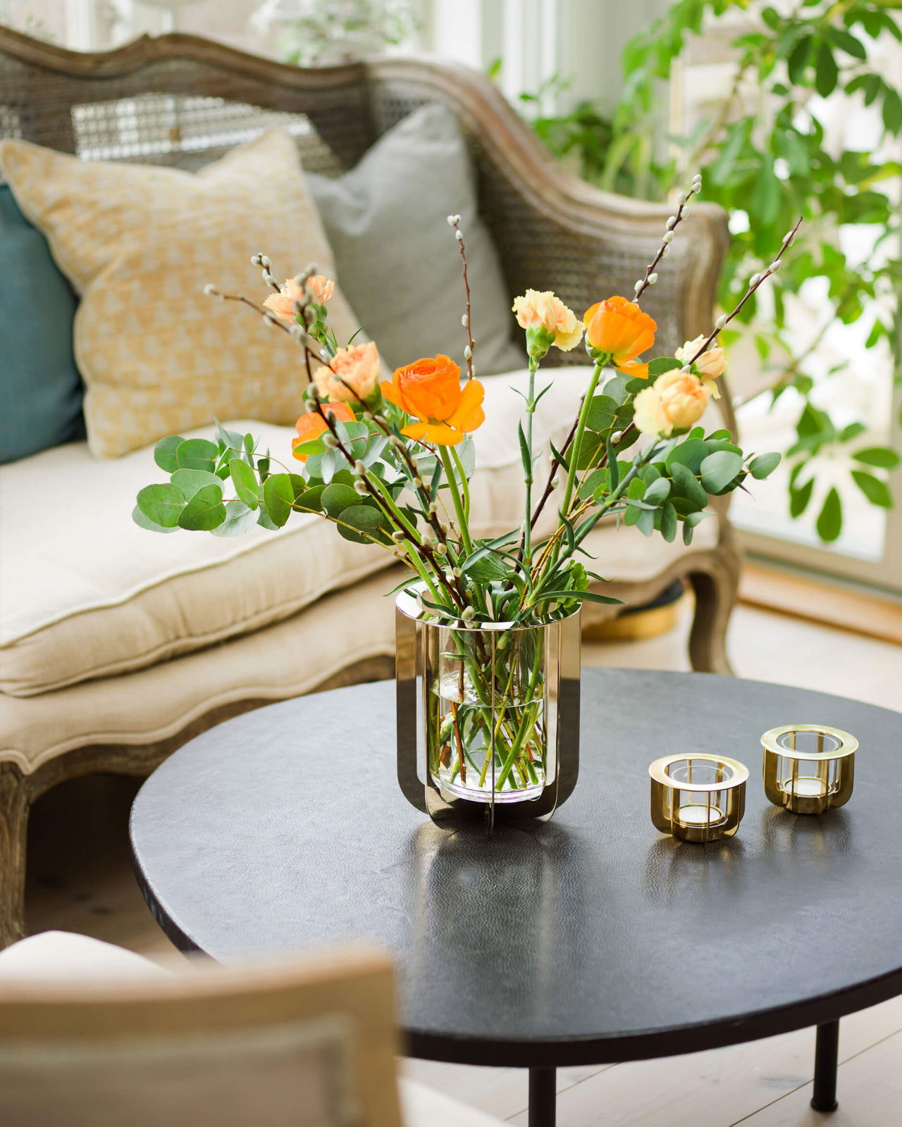 Geometrinen, messinkinen Jazz-kynttilälyhty on Anki Gneibin suunnittelema ja kuuluu Klongin mallistoon.