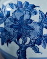 Zina on kaunis ja koristeellinen uurna, jossa on käsinmaalattu sinivalkoinen kiinalaisaiheinen kuviointi.
