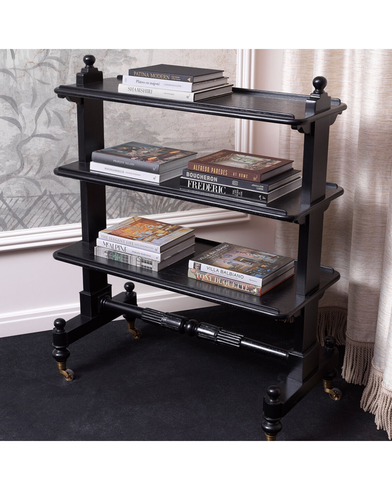 Lysander on elegantti tarjoiluvaunu, jossa on syvänmusta viimeistely ja pelkistetty, hienostunut ilme.
